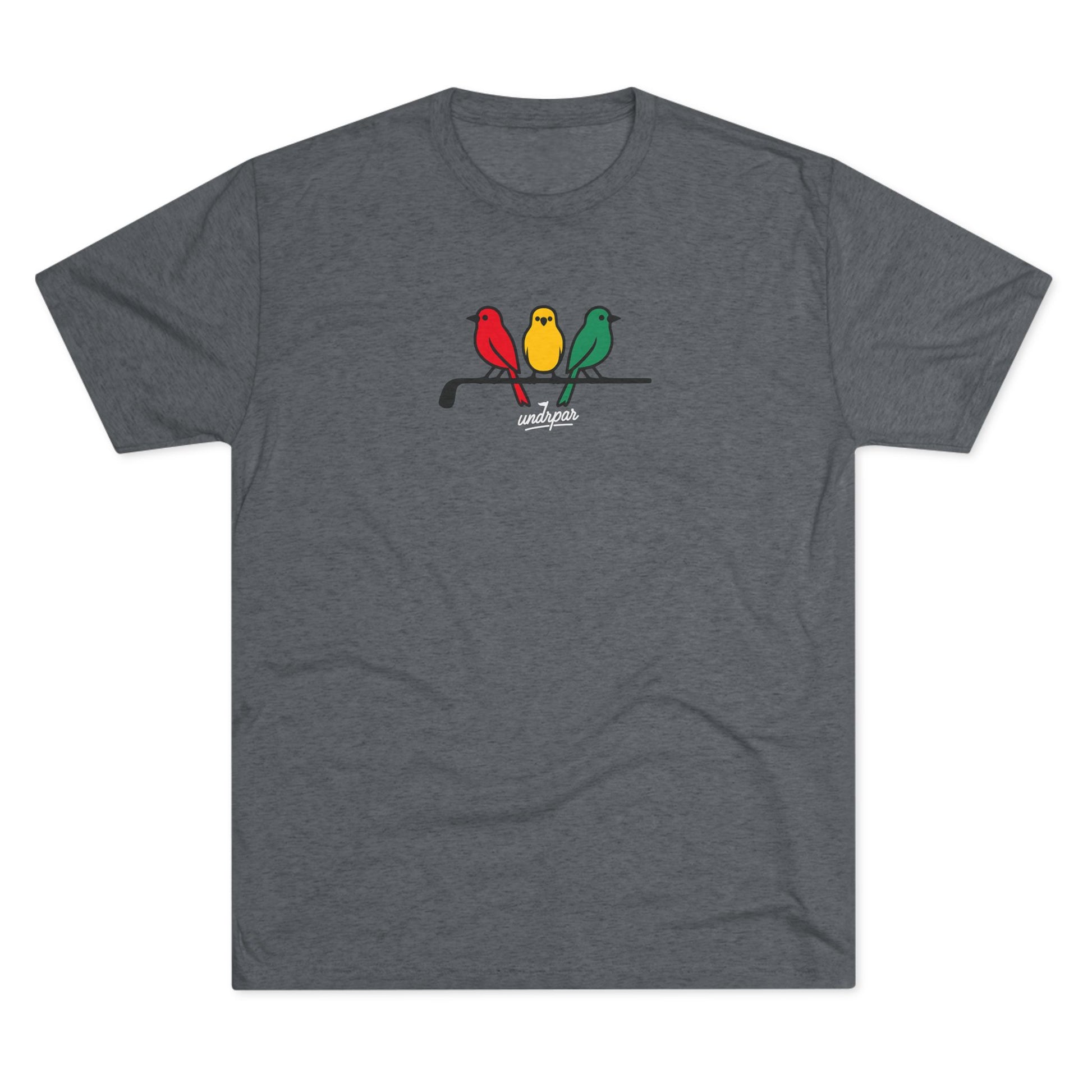 Three Little Birdies on an ultra-soft, light-weight tee that is snug around the arms and looser around the belly. Minimal shrinking after wash.